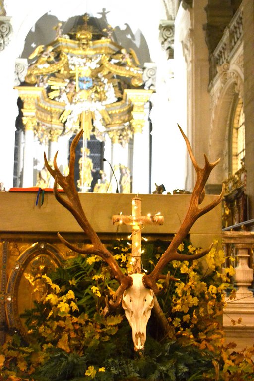 Eindrucksvoll wurde die Legende des Heiligen Hubertus beleuchtet. Hubertus, der einst rücksichtslos jagte, fand erst durch die Erscheinung des Hirschs mit dem Kreuz zwischen dem Geweih zur Umkehr und wurde zum Schutzpatron der Jäger und Förster. Hubertus von Lüttich gilt als Begründer und Vorbild der Waidgerechtigkeit, die heute noch einer der wichtigsten Bestandteile der Jagd ist. „Den Schöpfer im Geschöpfe ehren“ bringt die enge Verbindung von Mensch und Tier zum Ausdruck. Im Zentrum des Gedenkens stehen das waidgerechte Handeln der Jägerinnen und Jäger und die damit einhergehende große Verantwortung bei der Jagd. In den Fürbitten dankten die Anwesenden für „alles, was da ist und lebt auf dieser Erde“ und baten um den achtsamen Umgang mit allen Lebewesen und die Bewahrung von Lebensräumen in Wald, Feld und Wasser.
