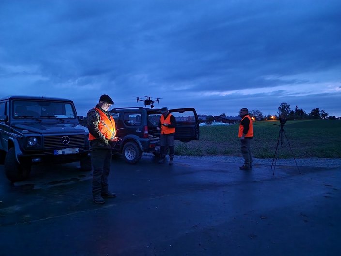 Das Drohnen-Team der Jäger und Landwirte vom Mainhardter Wald