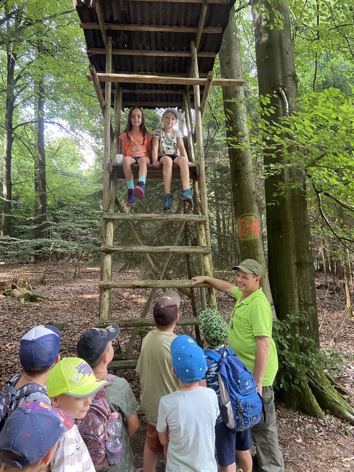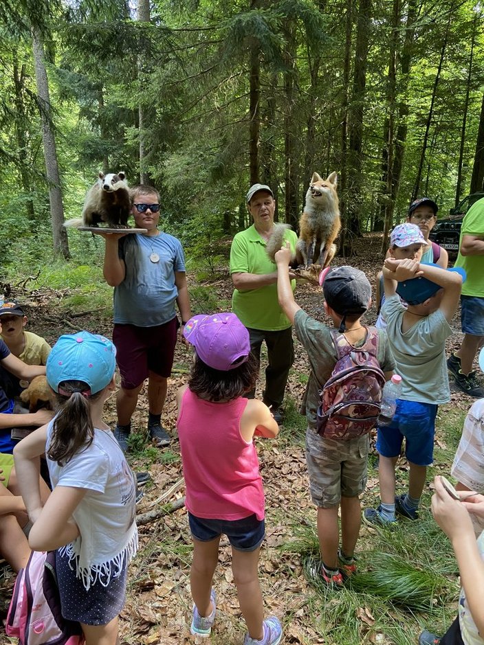 Von der Dorfschenke in Gailsbach führte der Weg entlang verschiedener Stationen durch den Wald. Die Kinder lernten das Verhalten in der Natur, der Jagdhund Anni zeigte sein Können bei der Verlorensuche und dem Apportieren aus dem Wasser. Die Jäger erzählten viel Wissenswertes über die heimischen Tierarten, darunter Rehe, Wildschweine, Raub- und Wasserwild. Neben den Tieren stand auch der Wald mit seinen Bäumen im Mittelpunkt. Alle kamen ordentlich ins Schwitzen und freuten sich über die Getränkepause. Die Besichtigung eines Dachs- bzw. Fuchsbaus und das Besteigen eines Hochsitzes bildeten den Abschluss.