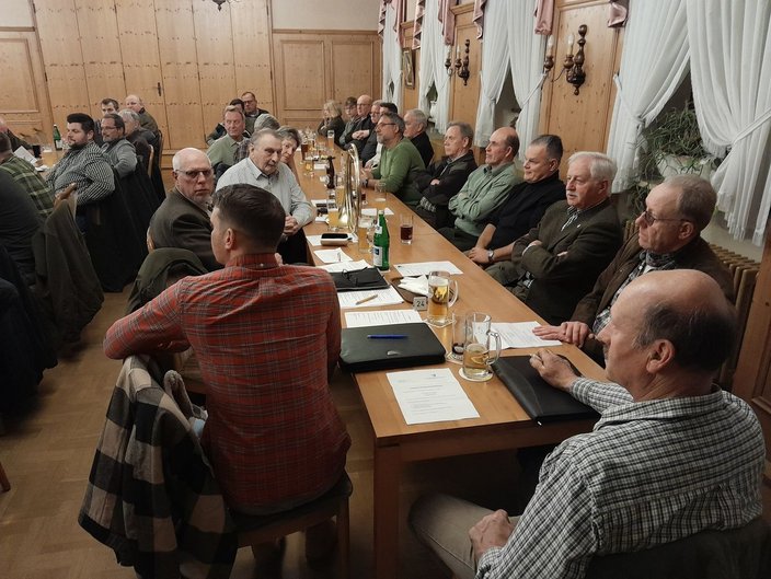 Hegeringleiter Martin Mayer und seine beiden Stellvertreter konnten zahlreiche Mitglieder und die Ehrenkreisjägermeister Kiesel und Mayr auf der Hegeringversammlung am 22.03.2024 im Gasthof Bären in Bühlertann begrüßen.