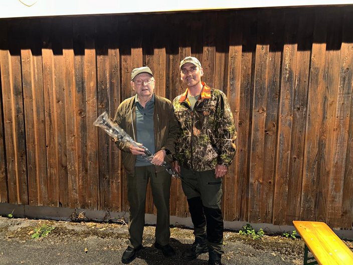 Am Donnerstag 28. September fand unser erstes gemeinsames Herbstschießen statt. 20 Schützen Jung und Alt trafen sich bei bestem Wetter, um den Schießnachweis zu erlangen. Nebenbei gab es für die besten Schützen in der Alters- und Juniorenklasse einen Sachpreis zu gewinnen. Gewertet wurden 5 Schüsse auf den laufenden Keiler sowie 5 Schüsse auf den Stehenden. In der Seniorenklasse gewann unser Heinrich Vollweiter mit 74 Punkten. Bei den Junioren wurde es etwas spannender.