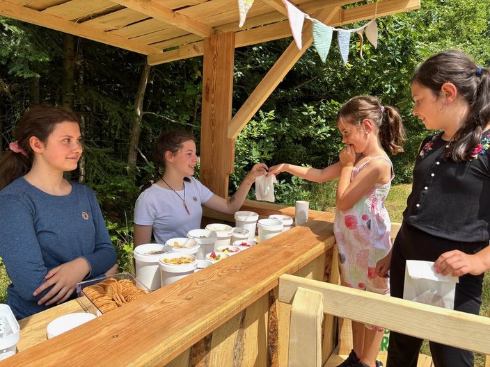 Nach all den aufregenden Erlebnissen war es Zeit für eine wohlverdiente Stärkung. Die Kinder und Eltern freuten sich über eine erfrischende Auswahl an Getränken, darunter spritzige Schorle, aromatischer Kaffee und eine leckere Vielfalt an selbstgebackenen Kuchen. Die Jägerinnen und Jäger hatten alles mit viel Liebe und einem Hauch von Waldzauber zubereitet, von köstlichen Wald-Muffins bis hin zu verführerisch duftenden Waldschnecken – nur das Beste kam auf den Tisch!