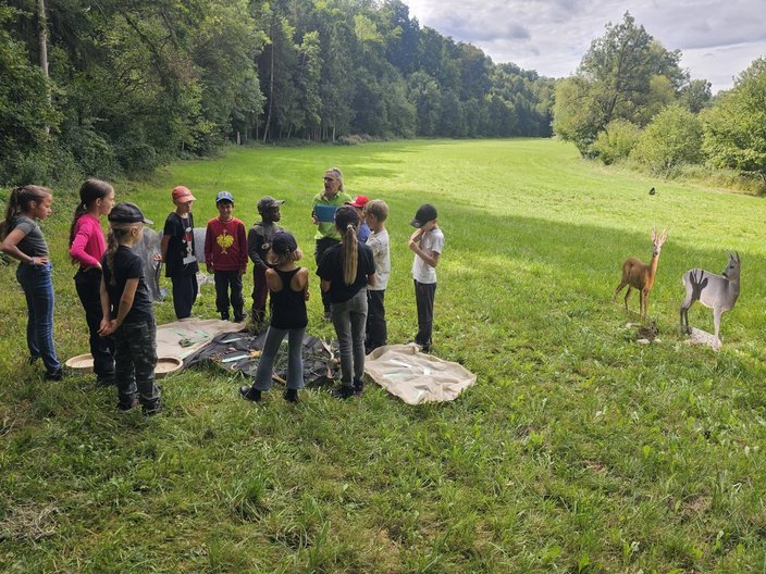 An einer Wissensstation erfuhren die Kinder Spannendes über die Jagd und die Tiere im Wald und auf dem Feld – insbesondere über Reh- und Schwarzwild.