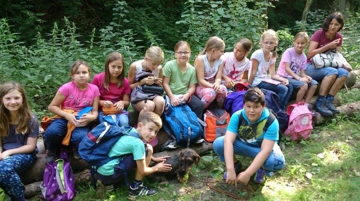 Unterwegs werden alle interessanten Funde in Becherlupen begutachtet und anschließend wieder freigelassen. Highlight ist natürlich der Hund, den jeder einmal an der Leine führen möchte. Der Spaß- und Spielfaktor kommt mit einem Tierrätsel und der „Nachtwanderung“ nicht zu kurz.